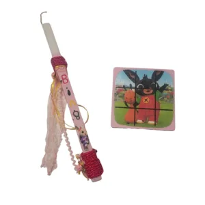 Αρωματική λαμπάδα 34 cm με θέμα το αγαπημένο κουνελάκι, διακοσμημένη με την τεχνική ντεκουπάζ για μοναδικό αποτέλεσμα.