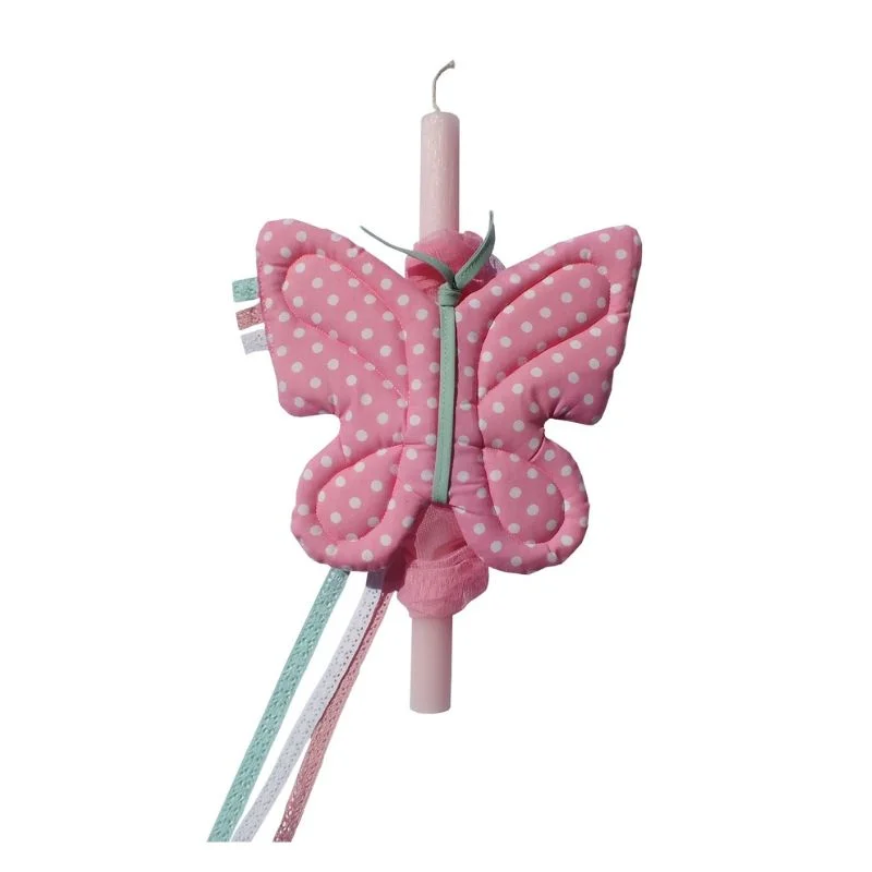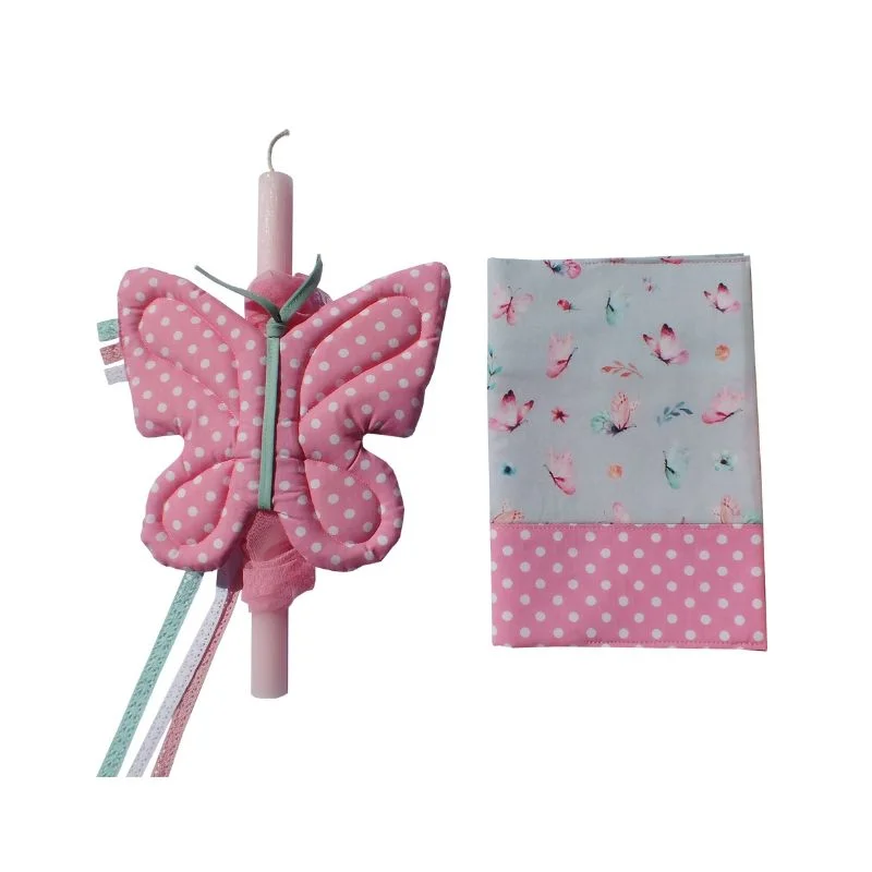Σετ Πασχαλινή αρωματική λαμπάδα διακοσμημένη με υφασμάτινη πεταλούδα -ένα χειροποίητο μαλακό παιχνίδι από 100% βαμβακερά υφάσματα για τα μικρά χεράκια και για να διακοσμήσει το παιδικό δωμάτιο.