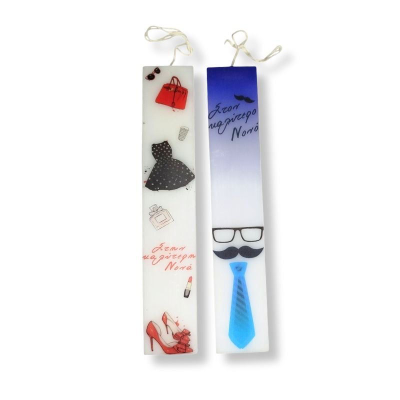 Πρωτότυπες χειροποίητες πασχαλινές λαμπάδες 2 τμχ. πλακέ “Στην καλύτερη Νονά – Στον καλύτερο Νονό”.