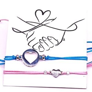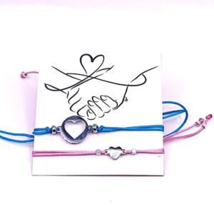 Minimal βραχιολάκια ΜΑΜΑ & ΚΟΡΗ. Ατσάλινη πλάκα με διάτρητη καρδιά σε έντονο μπλε μεταλλιζέ κορδόνι και ατσάλινη καρδούλα σε μεταλλιζέ ροζ κορδόνι. Μοναδικός, παντοτινός δεσμός μαμάς και κόρης ιδανικό δώρο για τη Γιορτή της Μητέρας. Ρυθμιζόμενο μήκος.
