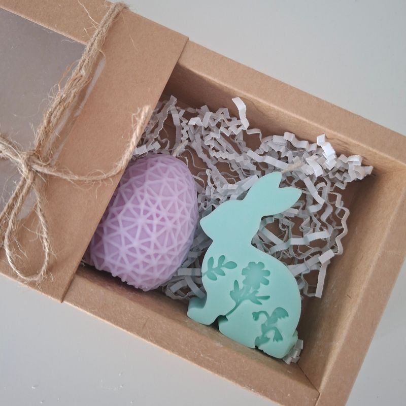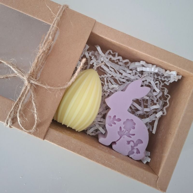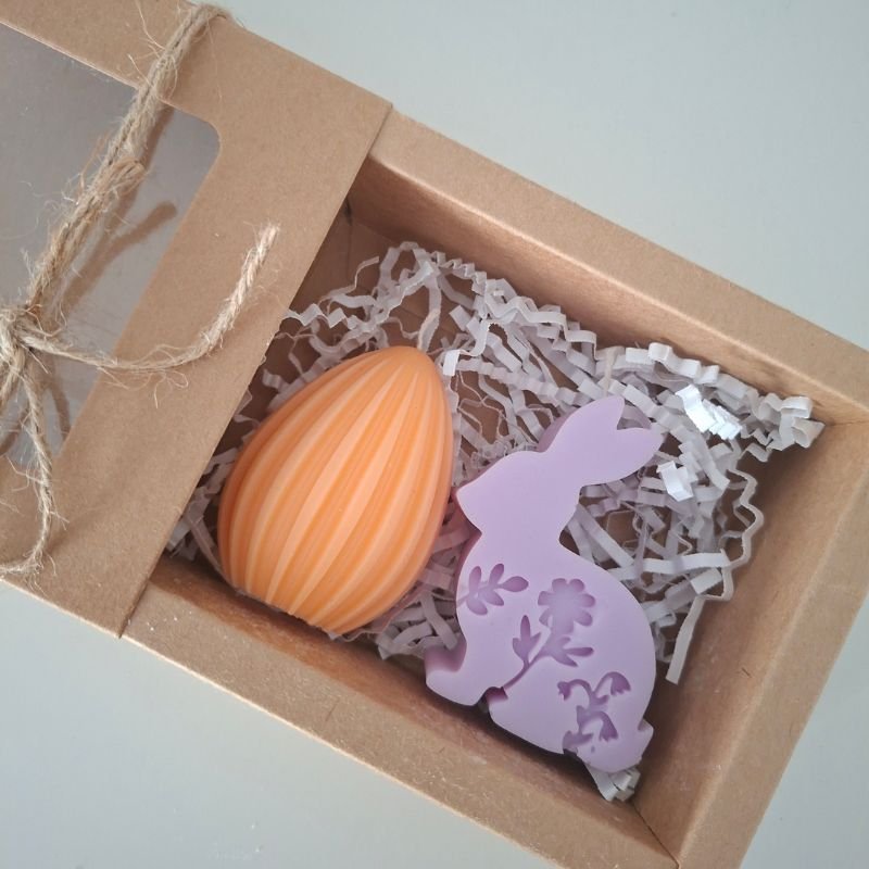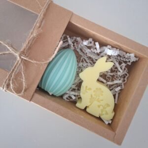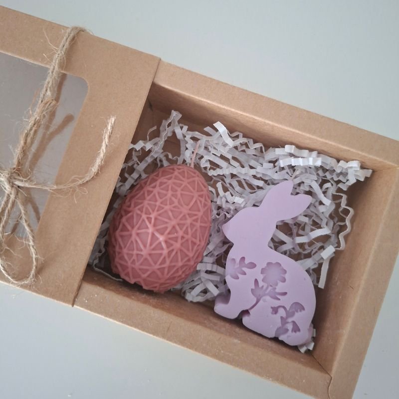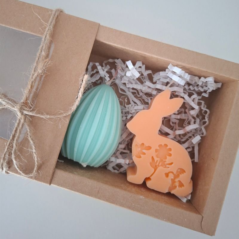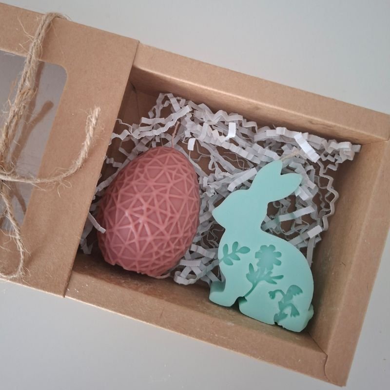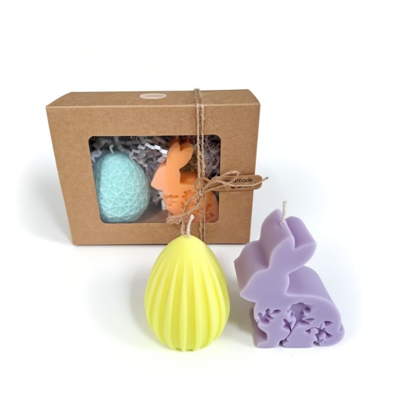 Σετ πασχαλινών αρωματικών κεριών με σχέδιο “αυγουλάκι” & “λαγουδάκι” σε διάφορα χρώματα.