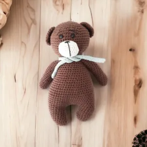 Πλεκτό αρκουδάκι αγκαλιάς ύψους 25cm. Φτιαγμένο από νήμα 100%, κατάλληλο για παιδιά και ματάκια ασφαλείας.