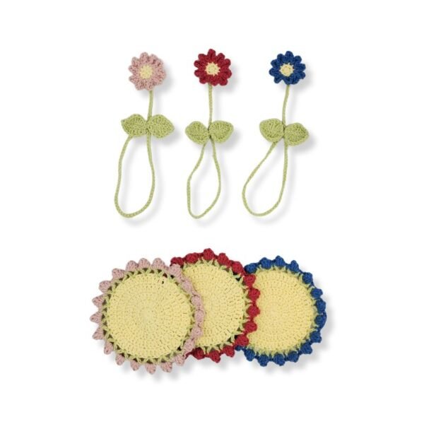 Πλεκτό σετ με σελιδοδείκτη και σουβέρ – για να απολαμβάνεις το βιβλίο και τον καφέ σου με στυλ! Ιδανικό για δώρο ή και για σένα που θες κάτι ξεχωριστό.