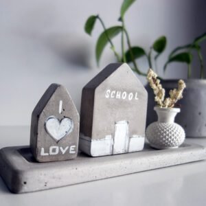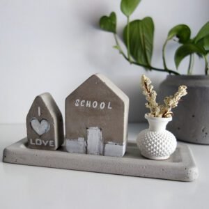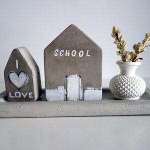 Σετ που αποτελείται από 2 σπιτάκια, ένα μικρό βαζάκι και μία βάση με μικρή εσοχή, από τσιμέντο. Είναι ζωγραφισμένα στο χέρι περασμένα με ακριλικό οικολογικό βερνίκι. Ένα δώρο για τους αγαπημένους σας δασκάλους, ένα διακοσμητικό για το γραφείο ή τη βιβλιοθήκη τους. Συνδυάζεται το με άλλα μαύρα, λευκά, ή γκρι επιτραπέζια διακοσμητικά, για μια πιο ολοκληρωμένη διακοσμητική πρόταση. Είναι μοναδικό μια κανένα επόμενο δεν μπορεί να γίνει ακριβώς το ίδιο λόγω της ζωγραφικής με ελεύθερο χέρι. Για διευκρινήσεις σχετικά με το προϊόν ή παραγγελίες, παρακαλώ επικοινωνήστε με τη δημιουργό.