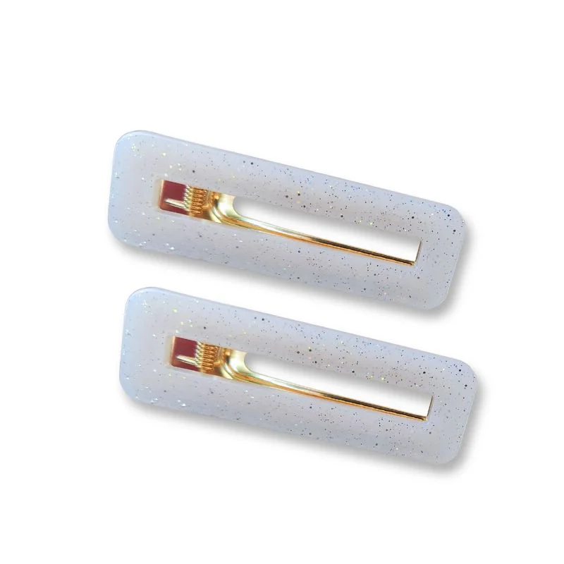 Σετ τσιμπιδάκια μαλλιών τετράγωνα από υγρό γυαλί σε λευκό χρώμα και χρυσόσκονη.
