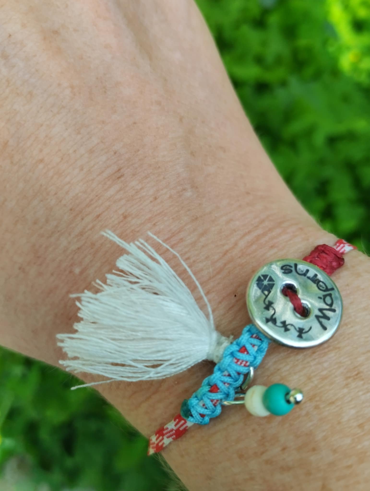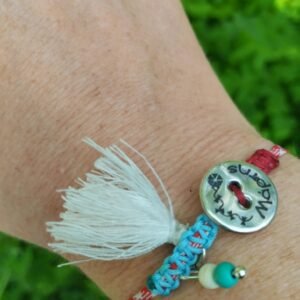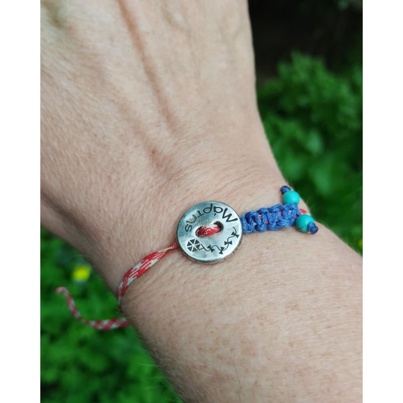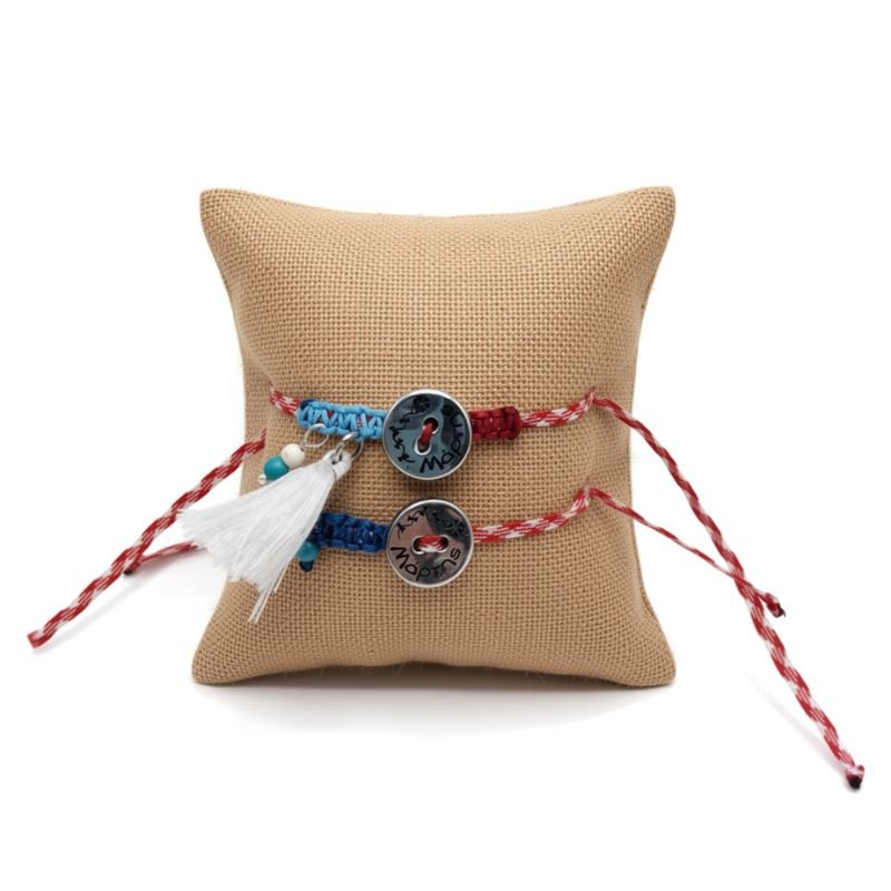 Σετ βραχιολιών με κορδόνι κόκκινο και λευκό και επάργυρη μεταλλική ταυτότητα. Ένα σετάκι ιδιαίτερο ιδανικό δωράκι για την μαμά και τον γιο της.