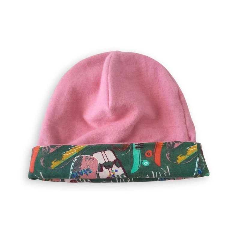 Σκουφάκι από οργανικό ελαφρύ φούτερ ύφασμα, πολύ απαλό και ζεστό, για περίμετρο κεφαλής 52-53 εκ. (περίπου για 3-6 ετών).