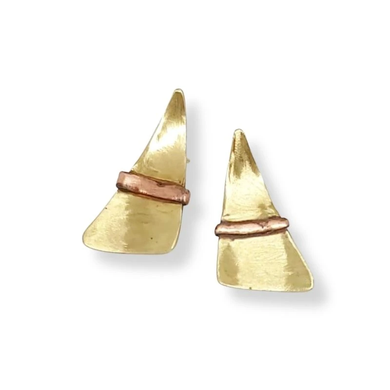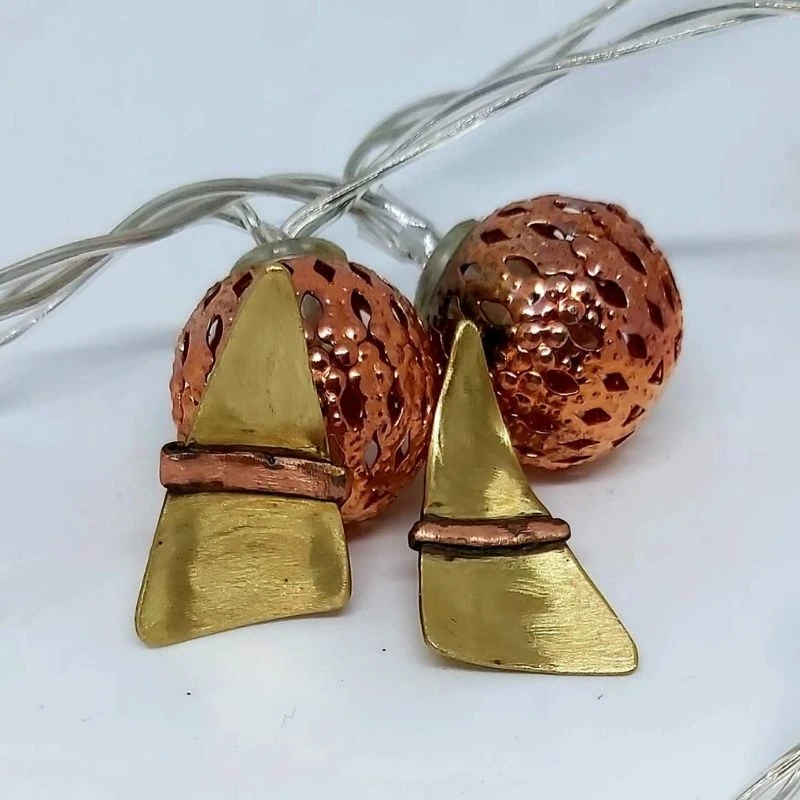 Μοναδικά σκουλαρίκια φτιαγμένα από φύλλο μπρούντζου και χαλκό.