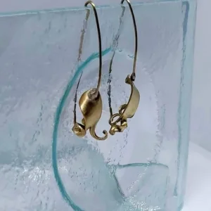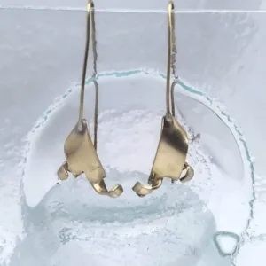 Χειροποίητα σκουλαρίκια, κατασκευασμένα από φύλλο μπρούντζου, με ακανόνιστο σχήμα και μακρύ γαντζάκι.