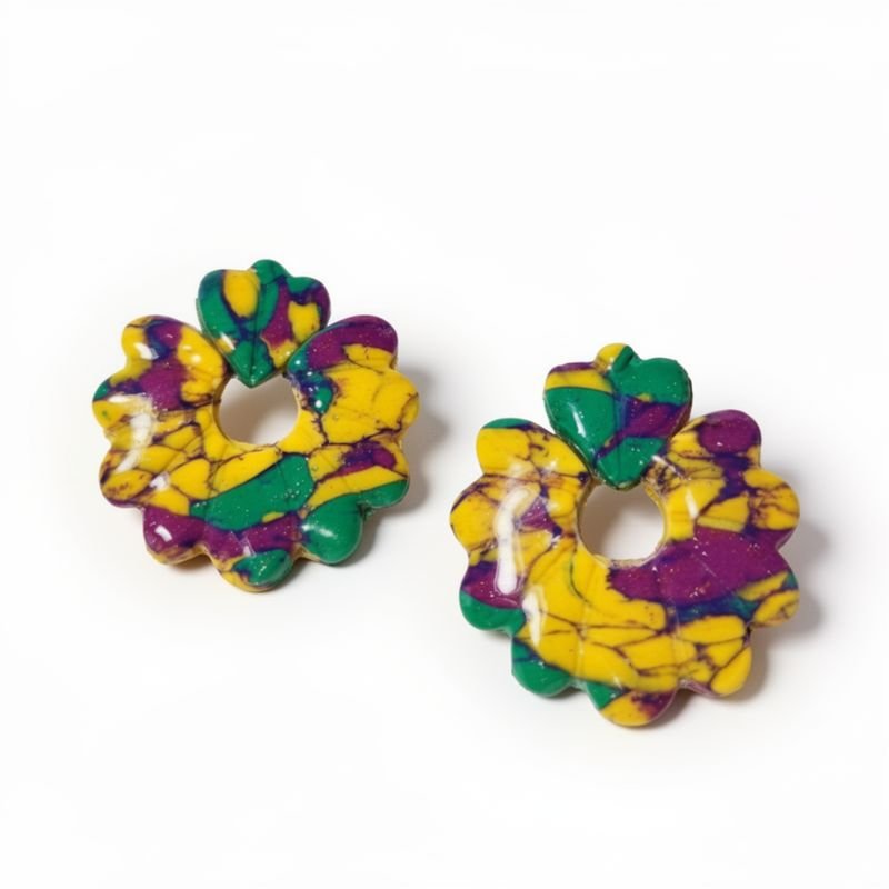 Σκουλαρίκια από πολυμερικό πηλό σε μωβ, κίτρινο και πράσινο, artist bloom
