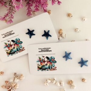 Χειροποίητα σκουλαρίκια αστερίες από υγρό γυαλί σε δύο αποχρώσεις του μπλέ.