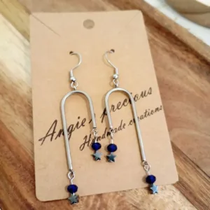 Σκουλαρίκια κρεμαστά από ατσάλι, άνισα με μπλέ κρυσταλλάκια και αστέρια αιματίτη