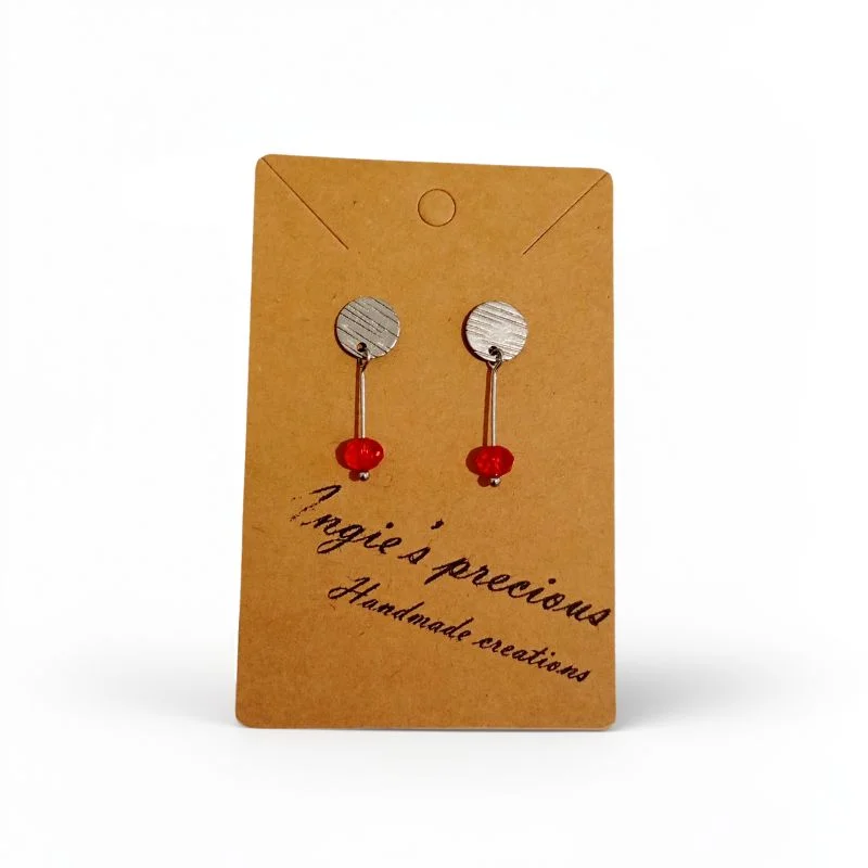 Σκουλαρίκια ατσάλινα καρφωτά με κρεμαστό κόκκινο κρύσταλλο.