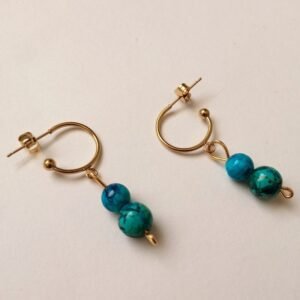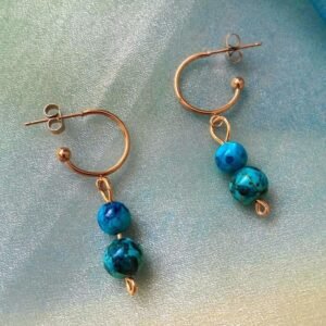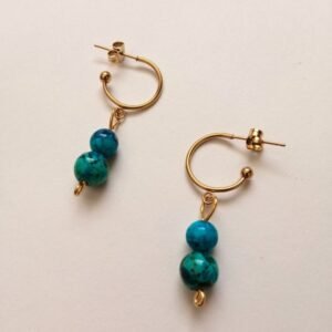 Σκουλαρίκια με κρίκους από ατσάλι και ημιπολύτιμες πέτρες χαολίτη σε αποχρώσεις μπλε-γαλάζιου με “νερά”.