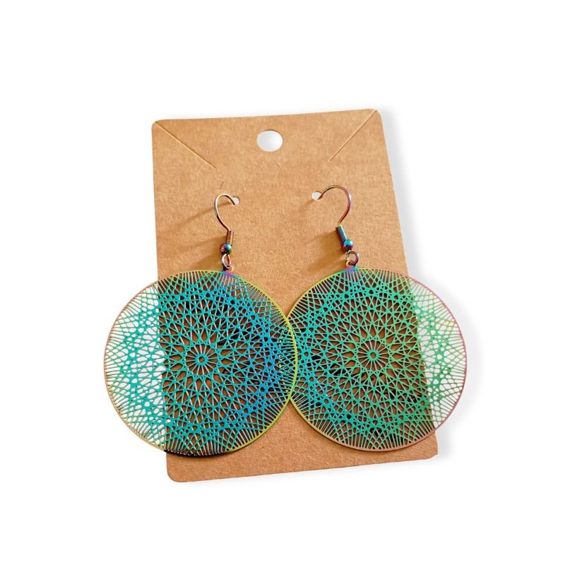 Σκουλαρίκια boho σε σχήμα ονειροπαγίδα από πολύχρωμο ατσάλι που αλλάζει χρώμα με το φως