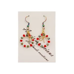 Χριστουγεννιάτικα σκουλαρίκια σε σχήμα στεφάνι με χάντρες και φιόγκο. Ιδιαίτερη κομψή γιορτινή επιλογή για να ξεχωρίζετε.