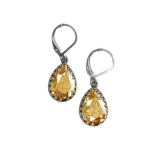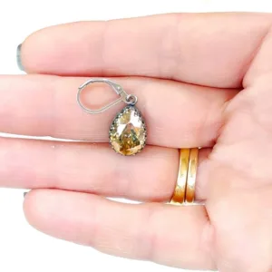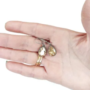 Ατσάλινοι κρίκοι από τους οποίους κρέμονται κρύσταλλα swarovski σε χρώμα light topaz. Τα καστόνια είναι επάργυρα αντικέ.