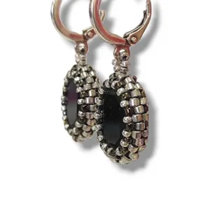Μαύρο οβάλ, Αυθεντικά κρύσταλλα swarovski, που φωλιάζουν μέσα σε χειροποίητα καστόνια, φτιαγμένα με χάντρες miyuki.