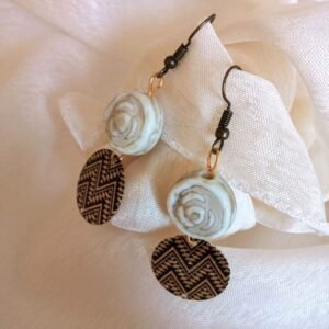 • Χειροποίητα κρεμαστά σκουλαρίκια με κεραμικό και μεταλλικό στοιχείο