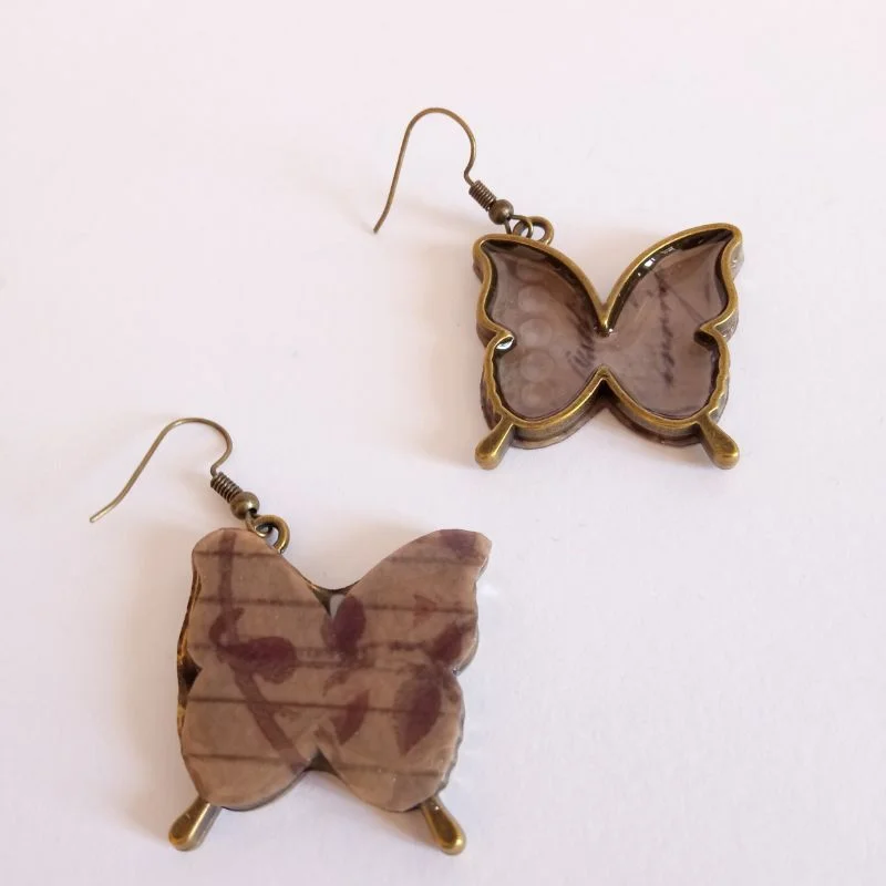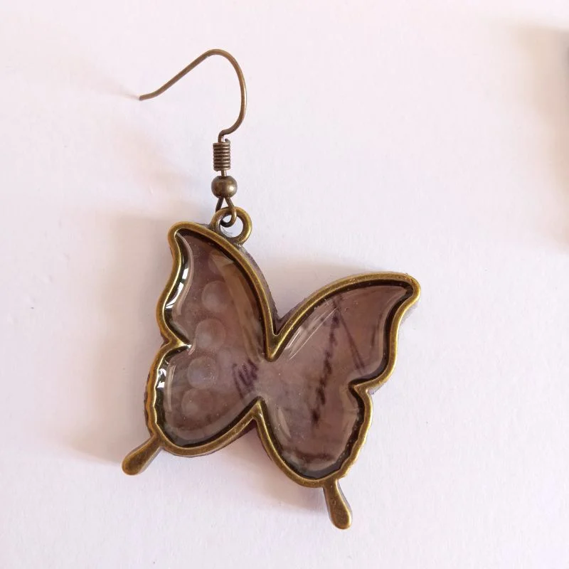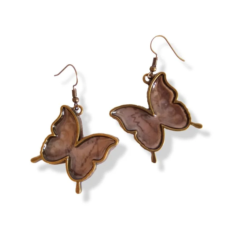 Σκουλαρίκια κρεμαστά, πεταλούδα, μπρονζέ αντικέ, σε στυλ vintage, σε καφέ αποχρώσεις.