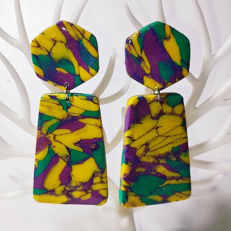 Σκουλαρίκια από πολυμερικό πηλό με την τεχνική terrazzo.