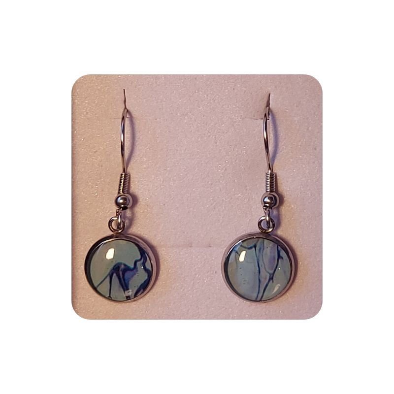 Σκουλαρίκια κρεμαστά, στρογγυλά από υγρό γυαλί, Marble Earrings