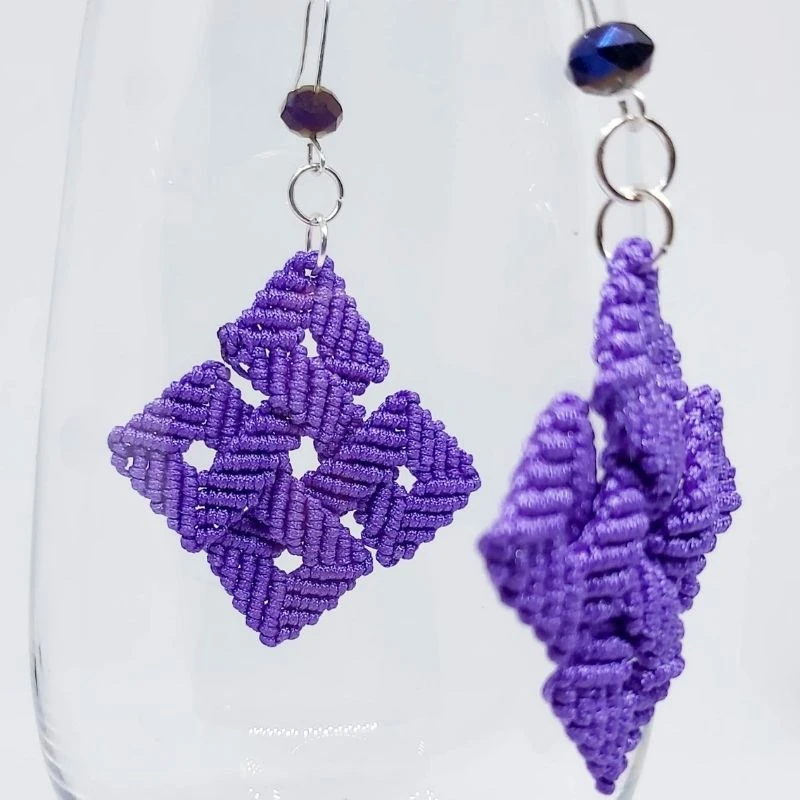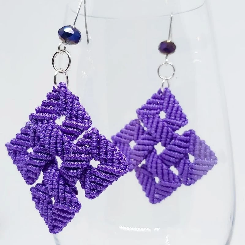 Το γαντζάκι τους είναι από ασημένιο σύρμα και είναι διακοσμημένο με κρυστάλλινη μωβ χάντρα.