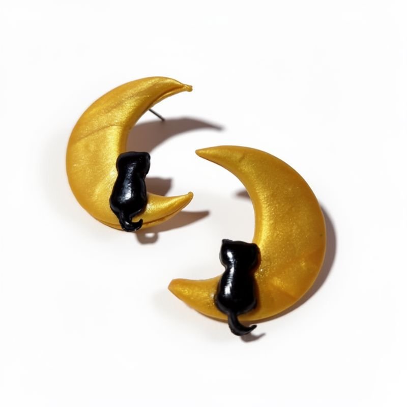 Σκουλαρίκια μαύρη γάτα στο φεγγάρι