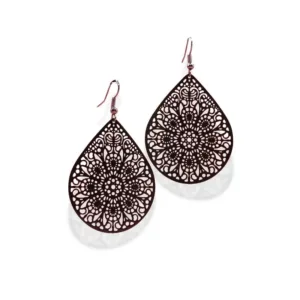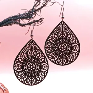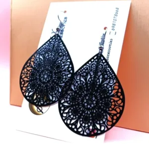 Boho μεγάλα σκουλαρίκια με μαύρο μεταλλικό φιλιγκρί (ελαφρύ διάτρητο μεταλλικό στοιχείο)σε γάντζο.