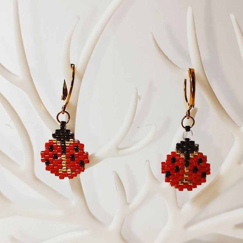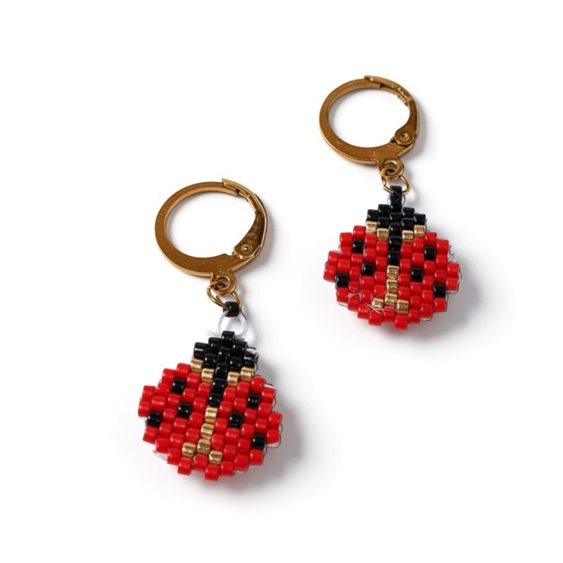Παιδικά σκουλαρίκια με γυάλινες χάντρες miyuki σε σχήμα πασχαλίτσα .