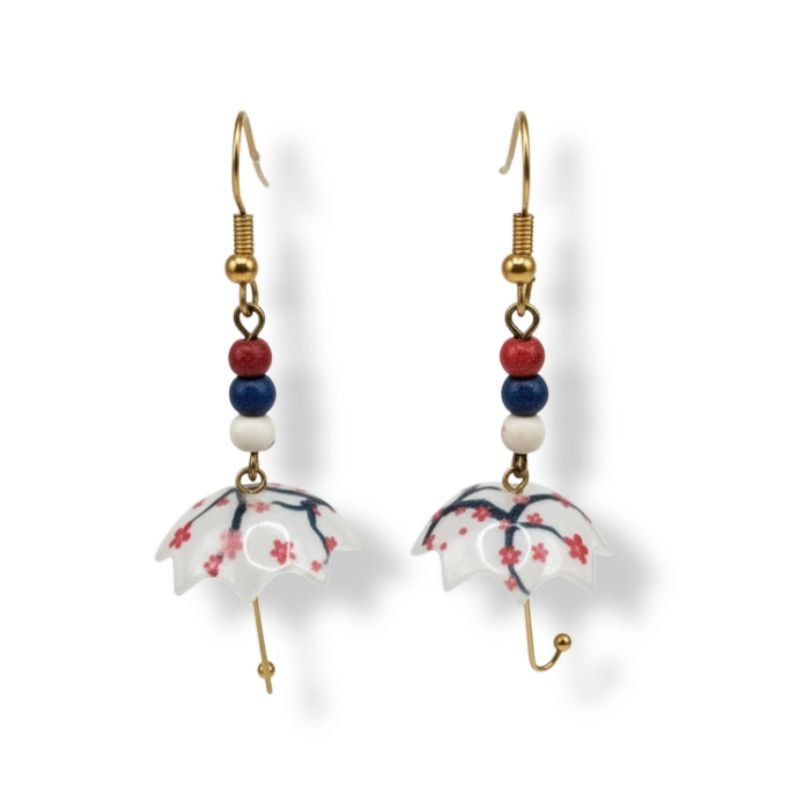 Σκουλαρίκια “Vintage Ομπρέλα” με Άνθη Κερασιάς & Πορσελάνινη Υφή