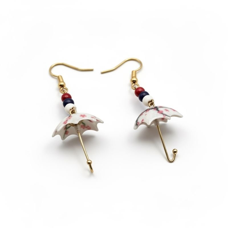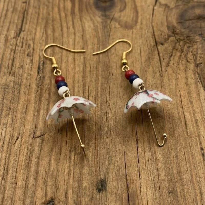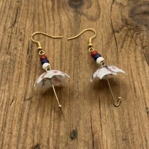 Προσθέστε μια δόση ρομαντισμού και νοσταλγίας στο στυλ σας με αυτά τα μοναδικά, χειροποίητα σκουλαρίκια σε σχήμα ομπρέλας.