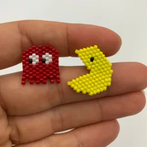 Καρφωτά σκουλαρίκια Pacman κεντημένα στο χέρι με χάντρες Miyuki. Σε συσκευασία δώρου.