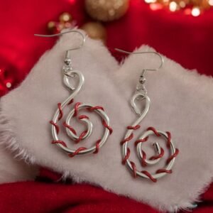 Σκουλαρίκια κρεμαστά με ατσάλινα γατζάκια σε σχήμα σπείρας με σύρμα αλουμινίου ασημί και κόκκινο.