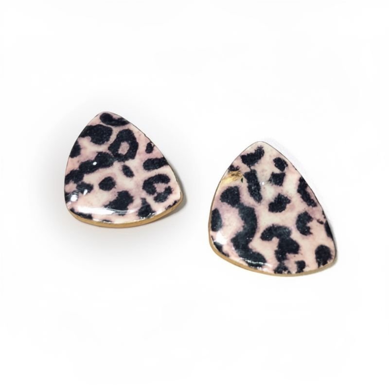 Σκουλαρίκια από πολυμερικό πηλό \, σε τριγωνικό σχήμα, με animal print μοτίβο.