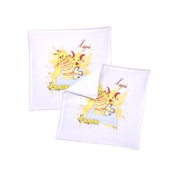 Η μία όψη είναι από πετσέτα και η άλλη όψη πολυεστερικό ύφασμα με εκτύπωση.