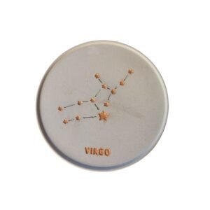 Στρογγυλά σουβέρ από καλλιτεχνικό τσιμέντο με τον αστερισμό του ζωδίου σας σε φυσικό χρώμα τσιμέντου και χρυσό για τις λεπτομέρειες. Αναγράφεται το ζώδιο στα αγγλικά και προσδίδει μια ξεχωριστή πινελιά μαζί με τον αστερισμό.