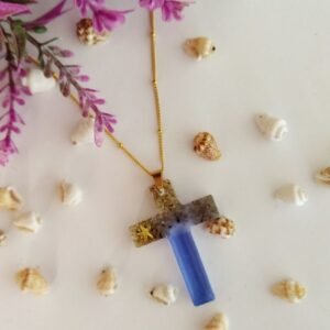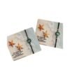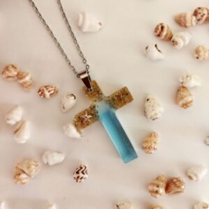 Μενταγιόν με φυσική άμμο θαλάσσης και μεταλλικό αστερία σε χρωματισμένο υγρό γυαλί.