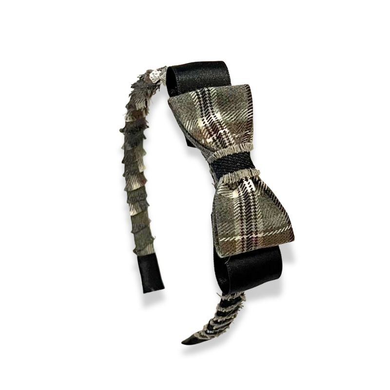 Στέκα με λεπτή βάση, χωρίς δοντάκια για να μην τραυματίζει, ντυμένη με καρώ πανί σε γήινους χρωματισμούς με ξέφτια και διακοσμητικό διπλό φιόγκο!