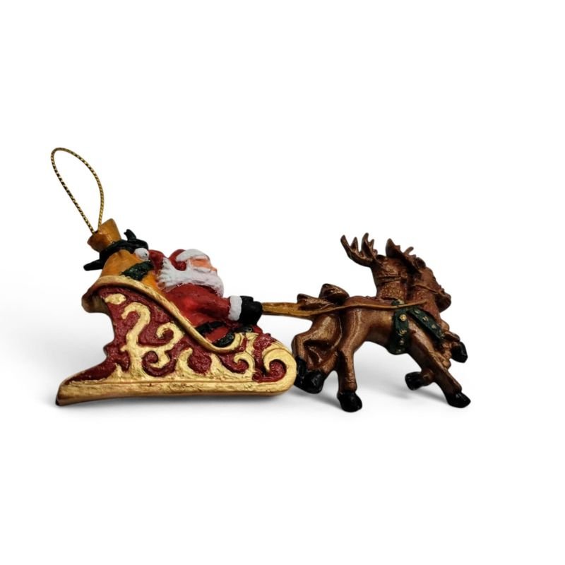 Κρεμαστό χριστουγεννιάτικο στολίδι έλκηθρο του Αη Βασίλη από ελαστική ρητίνη, 12*7 εκ. Βαμμένο με ακρυλικά χρώματα και βερνίκι gloss. Ένα ιδιαίτερο στολίδι που μπορεί να  κρεμαστεί στο δέντρο από το χρυσό κορδόνι, ιδιαίτερο δώρο για όλους και να δώσει ένα τσικ στην εορταστική ατμόσφαιρα.