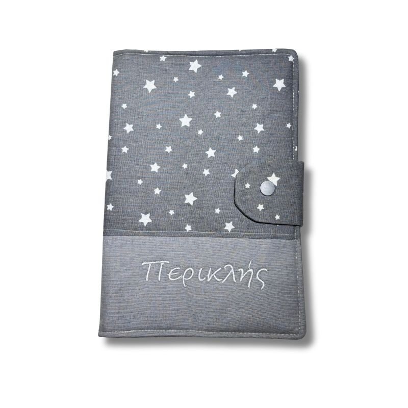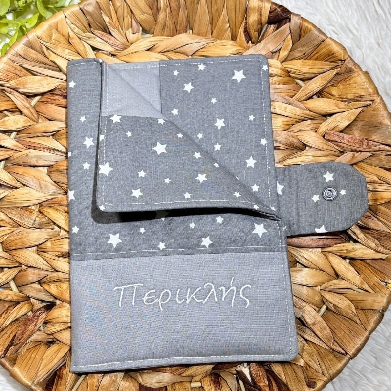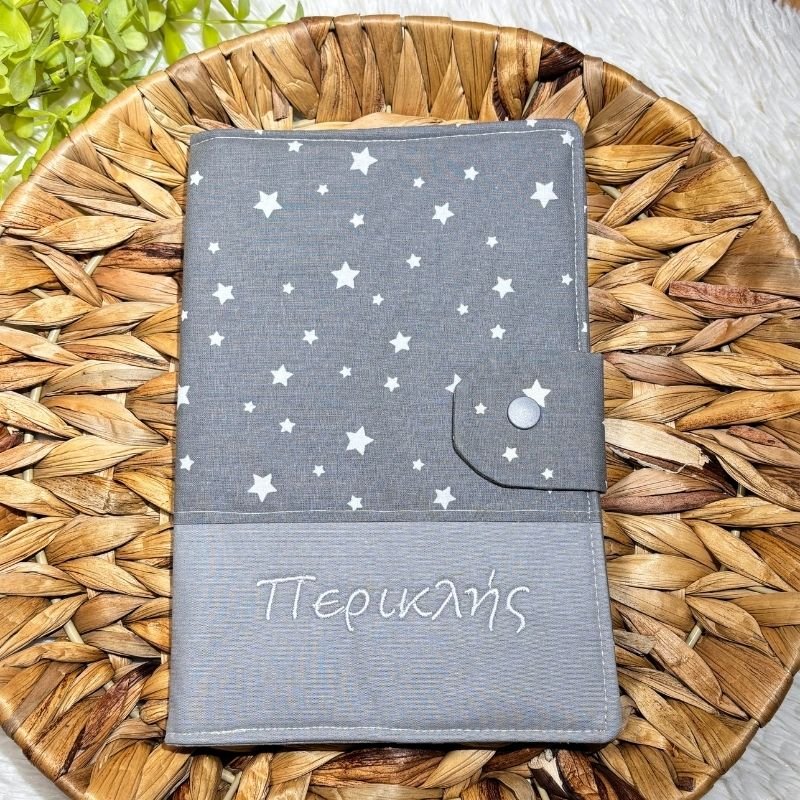 Θήκη για παιδικό βιβλιάριο υγείας “Αστέρια σε γκρι”