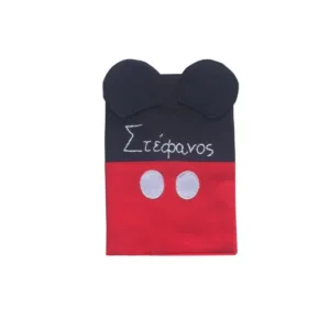 Υφασμάτινη θήκη για την προστασία του βιβλιαρίου υγείας στα χρώματα του αγαπημένου μας ποντικούλη/ποντικούλα με κεντημένο στο χέρι το όνομα του παιδιού. Είναι χειροποίητη από 100% βαμβακερά υφάσματα και έχει διαστάσεις 15,5 x 22 cm.