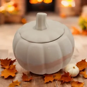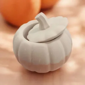 Θήκη με καπάκι σε σχήμα κολοκύθα από πορσελάνη. Κατάλληλη είτε για κερί, είτε για αποθήκευση κοσμημάτων.