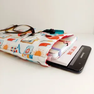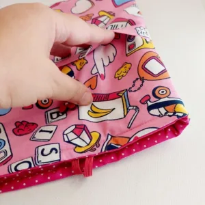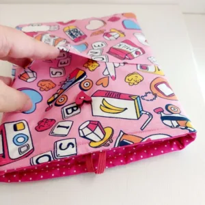 Θήκη βιβλίου διάστασης 20 εκατοστά μήκος και 26 εκατοστά ύψος, με εσωτερικά μπροστινά τσεπάκια για να βάζετε τα στυλό σας, τα γυαλιά σας, ακόμα και το κινητό σας. Στο επάνω μέρος κλείνει με λάστιχο.Μπορώ να την προσωποποιήσω βάζοντας το όνομα επάνω που επιθυμείς.Πάτα Ναί στην αντίστοιχη επιλογή και γράψε μου το όνομα που θέλεις στο αντίστοιχο κουτάκι.Το όνομα θα είναι με βινύλιο σε αντίστοιχα ταιριαστά χρώματα. Μπορείς να την πλύνεις στο πλυντήριο στο απαλό πρόγραμμα στους 30 ή ιδανικά στο χέρι. Σιδερώνεται σε μέτρια θερμοκρασία.