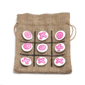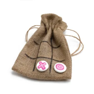 Το κάθε σετ παιχνιδιού περιλαμβάνει: 9 χειροποίητα πήλινα πιόνια και ένα πουγκάκι με ζωγραφισμένη την επιφάνεια του παιχνιδιού. Το πουγκάκι έχει διαστάσεις 14*18εκ.