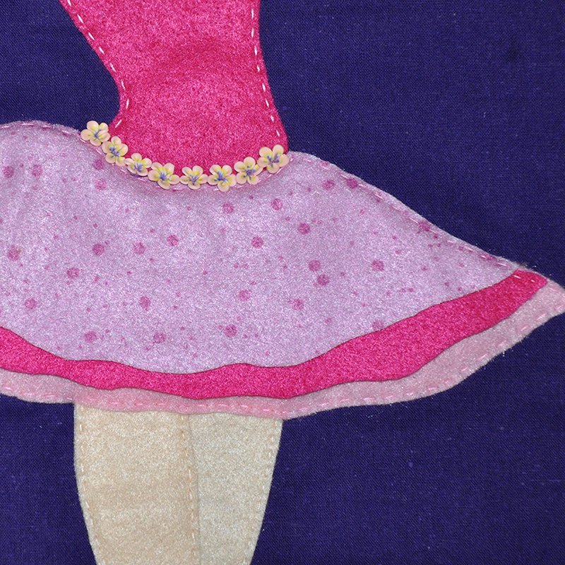 Το σχέδιό της έχει δημιουργηθεί από κομματάκια τσόχας κομμένα και ραμμένα ένα ένα στο χέρι.