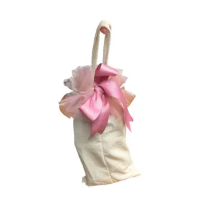 Τσαντούλα πάνινη, από βαμβακερό ύφασμα σε εκρού χρώμα και στην κορυφή στολισμένη με τούλι.