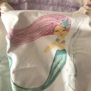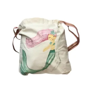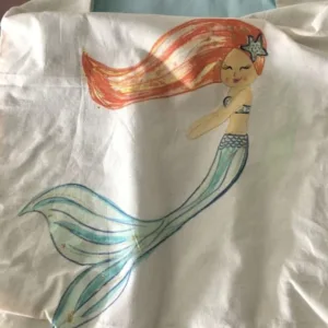 Τσαντούλα υφασμάτινη, φοδραρισμένη, με ζωγραφισμένη γοργόνα στο χέρι με ανεξίτηλα χρώματα.