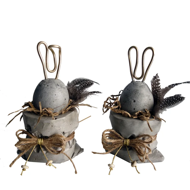 Τσιμεντένιο Σετ Με 2 Πουγκάκια Και 2 Αυγά/Κουνελάκια
