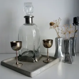 Τετράγωνος διακοσμητικός δίσκος από γκρι τσιμέντο, περασμένος με ακρυλικό οικολογικό βερνίκι . Μπορεί να χρησιμοποιηθεί για διάφορες χρήσεις.
